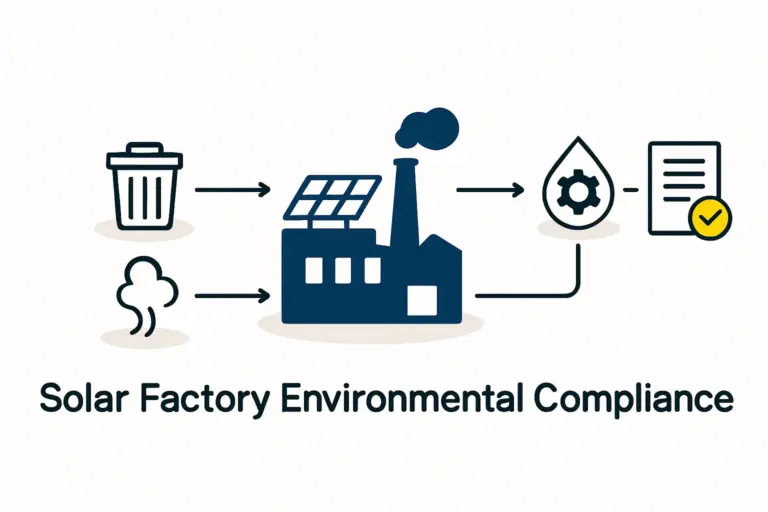 - Waste Management: Plans for managing industrial waste, including broken glass, scrap aluminum frames, and chemical residue from soldering and lamination.