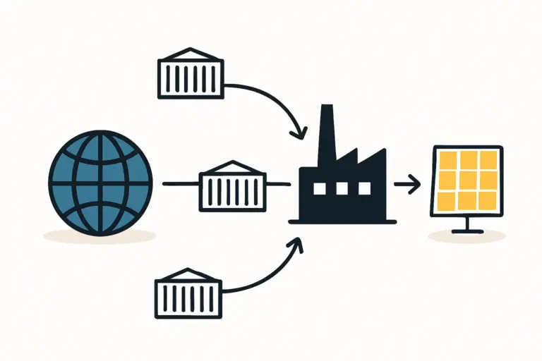 A factory’s efficiency depends on its ability to smoothly import raw materials (glass, cells, aluminum frames) and export finished modules, making robust port infrastructure and overland transport networks paramount.